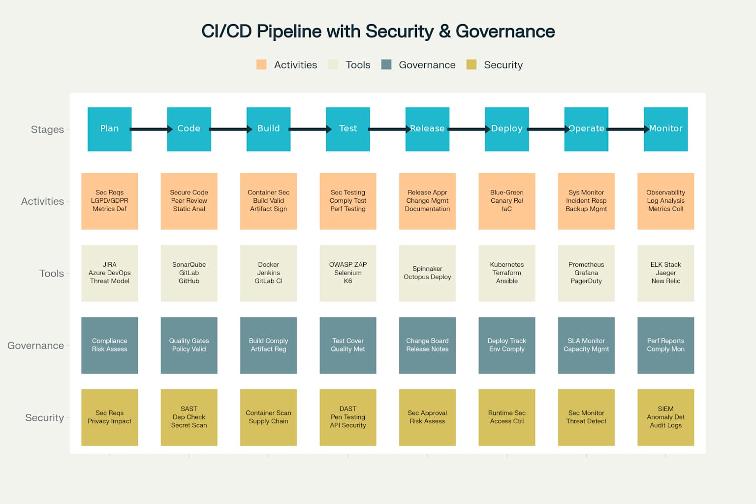 A governança em DevOps representa um equilíbrio crítico entre velocidade de entrega e controle de qualidade e segurança4. De acordo com o State of DevOps Report de 2024, organizações que implementam práticas maduras de governança conseguem aumentar a velocidade de entrega de software mantendo plena conformidade às normativas e segurança4. Este equilíbrio é fundamental, especialmente em um cenário onde a velocidade de desenvolvimento não pode comprometer a segurança e a conformidade regulatória78.